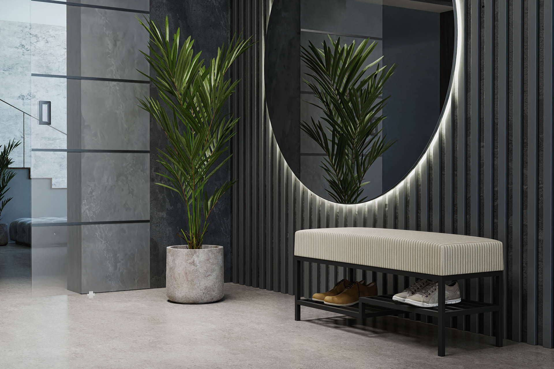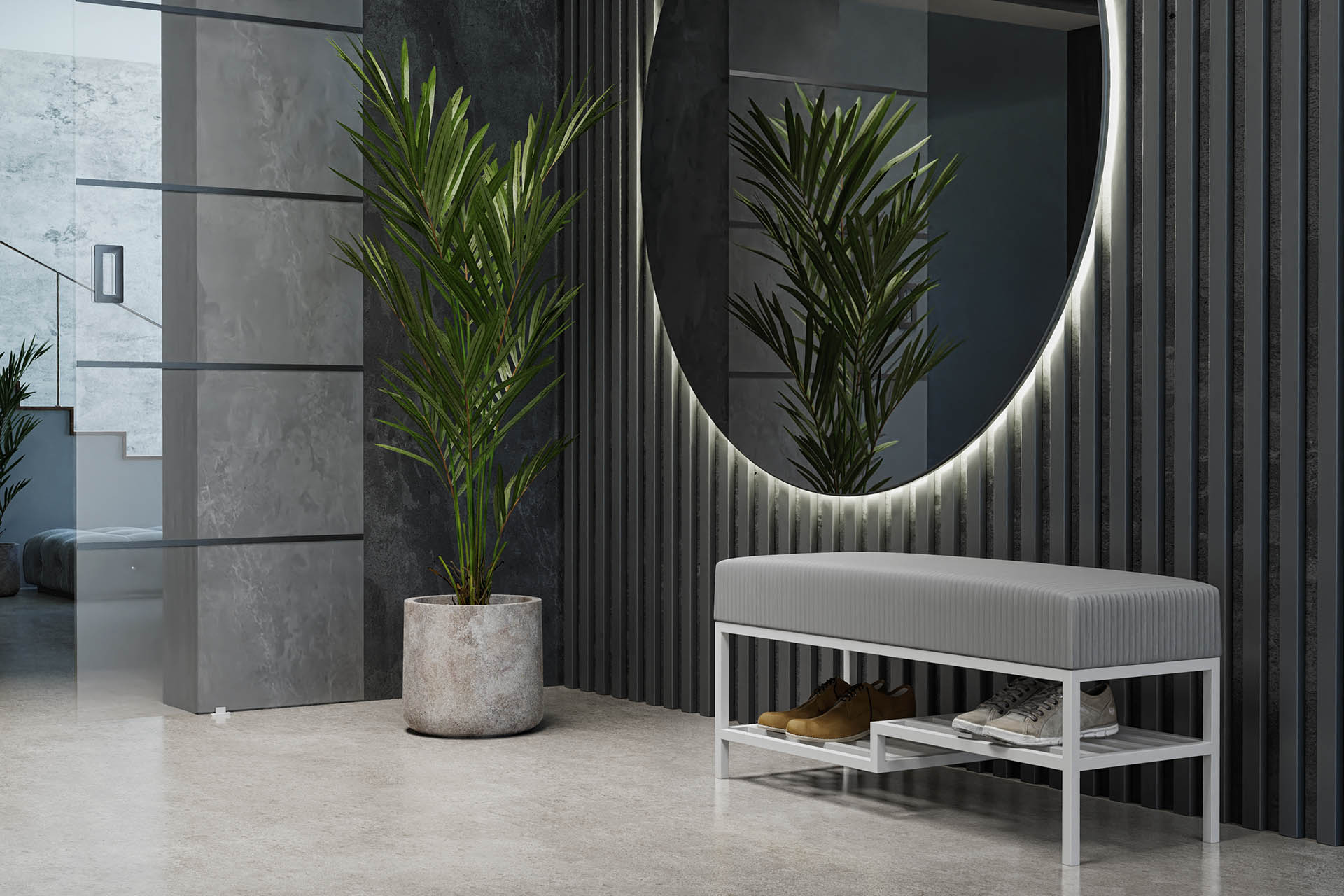 Ławka tapicerowana do przedpokoju z półką