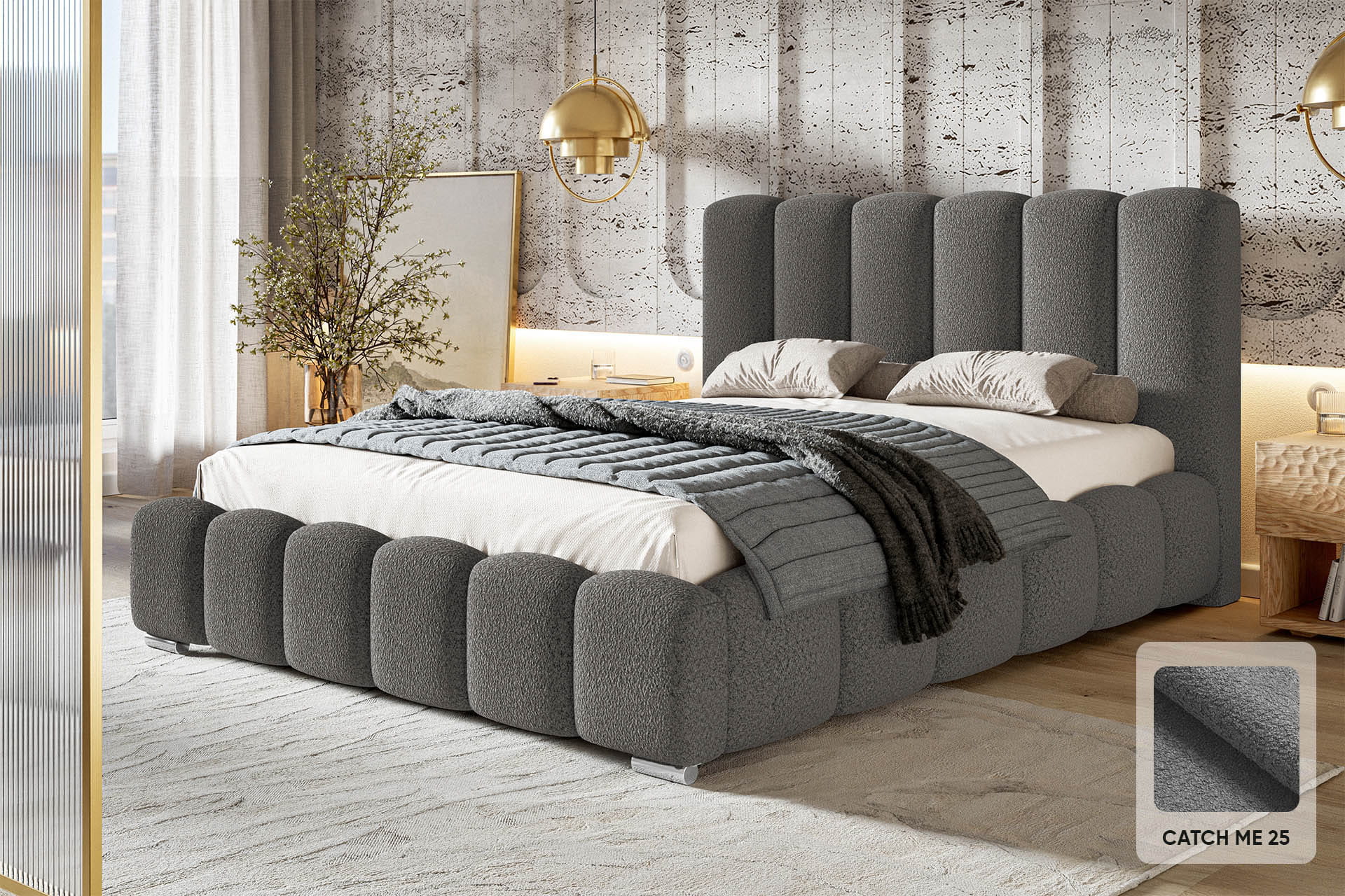 Łóżko tapicerowane BUBBLE - 90x200 cm z pojemnikiem na pościel + stelaż drewniany