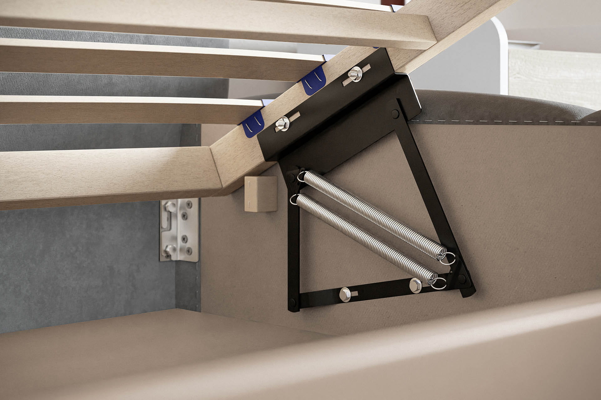 - Mechanizm podnoszenia stelaża na podnośnikach sprężynowych