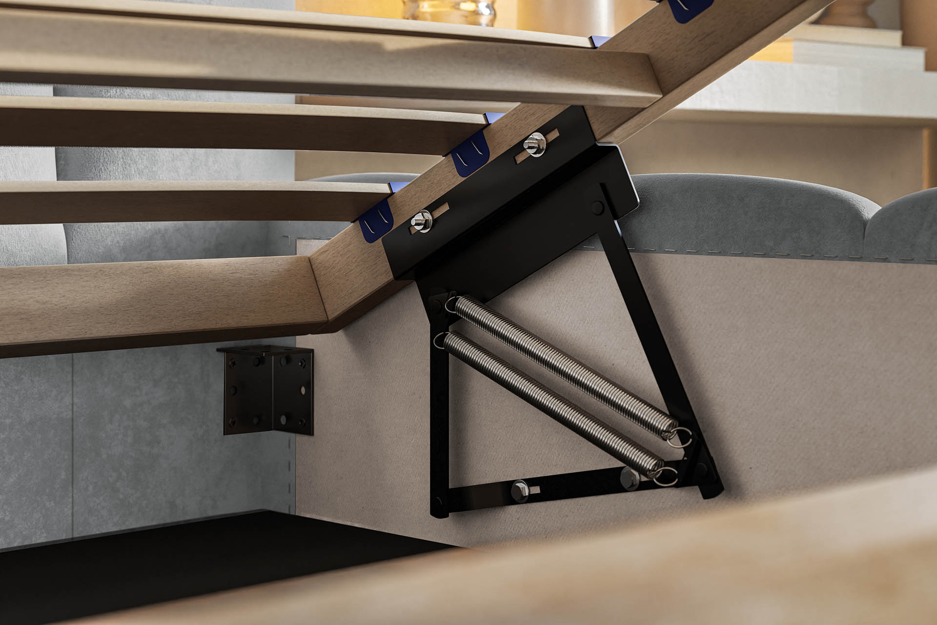 - Mechanizm podnoszenia stelaża na podnośnikach sprężynowych