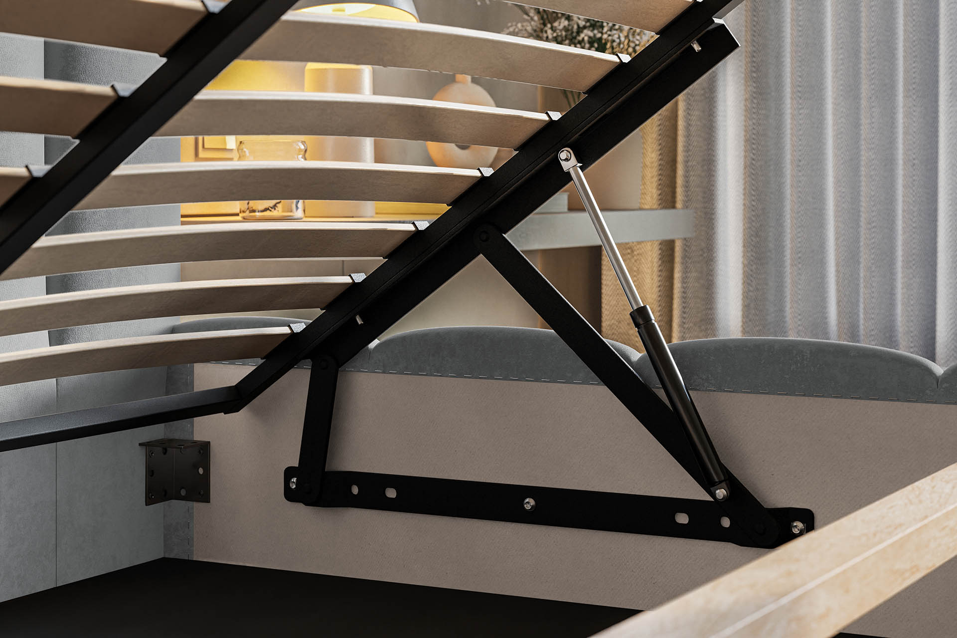- Pojemnik na pościel znajduje się na całej powierzchni łóżka