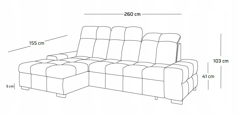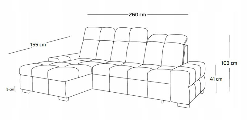 Narożnik PRESTINO S to nowoczesna propozycja dla tych, którzy cenią sobie wygodę, styl i praktyczne rozwiązania w codziennym użytkowaniu. Ten średniej wielkości model (260×155 cm) został zaprojektowany z myślą o maksymalnej funkcjonalności – oferuje komfortową przestrzeń do wypoczynku, funkcję spania oraz regulowane zagłówki, które pozwalają dostosować oparcie do własnych preferencji. Prosta, geometryczna forma idealnie wpisuje się w nowoczesne wnętrza, a wysokiej jakości tkanina nadaje mu elegancki i ponadczasowy charakter. Dzięki starannie dobranym proporcjom i uniwersalnemu designowi narożnik sprawdzi się zarówno w przestronnych salonach, jak i w bardziej kameralnych strefach dziennych. Narożnik wyposażony w rozkłaną funkcję spania o powierzchni 120x200 cm to doskonały wybór zarówno do codziennego wypoczynku, jak i do przenocowania gości. Wysuwany element pokryty tą samą tkaniną co reszta mebla tworzy spójną i elegancką całość – bez kompromisów estetycznych. Dodatkowym atutem jest pojemnik na pościel ukryty w otomanie. Przestronny i łatwo dostępny, idealnie sprawdzi się do przechowywania koców, poduszek czy rzadziej używanej pościeli. Dzięki niemu zachowasz porządek w salonie, bez rezygnowania z wygody i funkcjonalności.