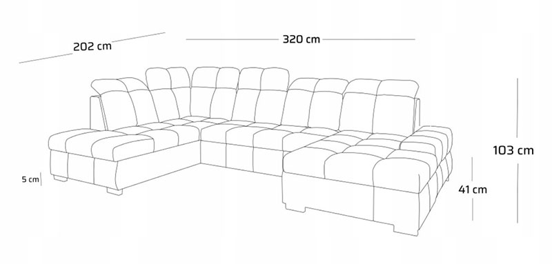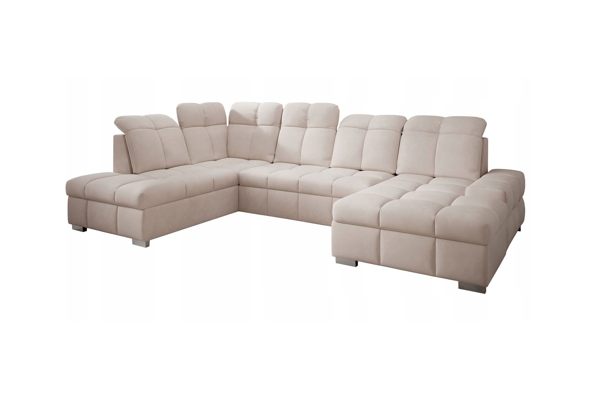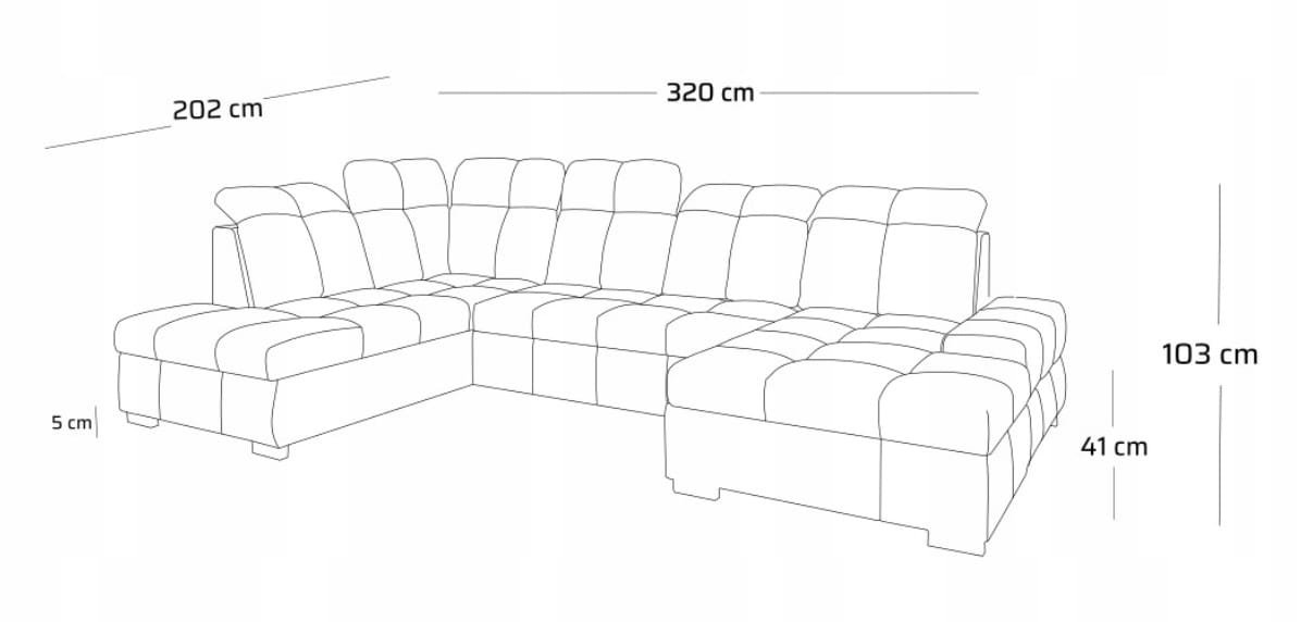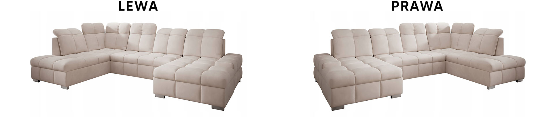 Narożnik PRESTIGE U, to elegancki narożnik w kształcie litery U, stworzony z myślą o tych, którzy chcą uczynić salon prawdziwym centrum domowego życia. Jego imponujące rozmiary sprawiają, że bez trudu pomieści większą rodzinę, oferując każdemu wyjątkową wygodę – zarówno podczas wspólnego oglądania filmu, jak i popołudniowego relaksu z książką. PRESTIGE U doskonale sprawdzi się także podczas spotkań towarzyskich, zapewniając gościom komfort na najwyższym poziomie. Ten model to coś więcej niż narożnik - dzięki funkcji rozkładania typu Delfin z łatwością zyskasz dużą powierzchnię spania o wymiarach 120x252 cm, idealną do okazjonalnego noclegu. Dwa pojemniki na pościel, sprytnie ukryte w bocznych częściach narożnika, pomogą w utrzymaniu porządku – bez trudu pomieszczą koce, poduszki czy inne tekstylia. Obsługa pojemników jest intuicyjna i wygodna dzięki zastosowanym mechanizmom podnoszącym. Milano U przyciąga wzrok wyrafinowaną formą. Masywna konstrukcja zyskuje wizualną lekkość dzięki subtelnie zaoblonym krawędziom i starannie wykonanym przeszyciom, które podkreślają nowoczesny charakter mebla. Stylowa tkanina z kolekcji nadaje całości elegancki. Regulowane zagłówki pozwalają na indywidualne dopasowanie oparcia, zwiększając komfort codziennego użytkowania.