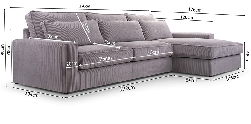 - Głębokość siedziska (bez poduch): 88 cm