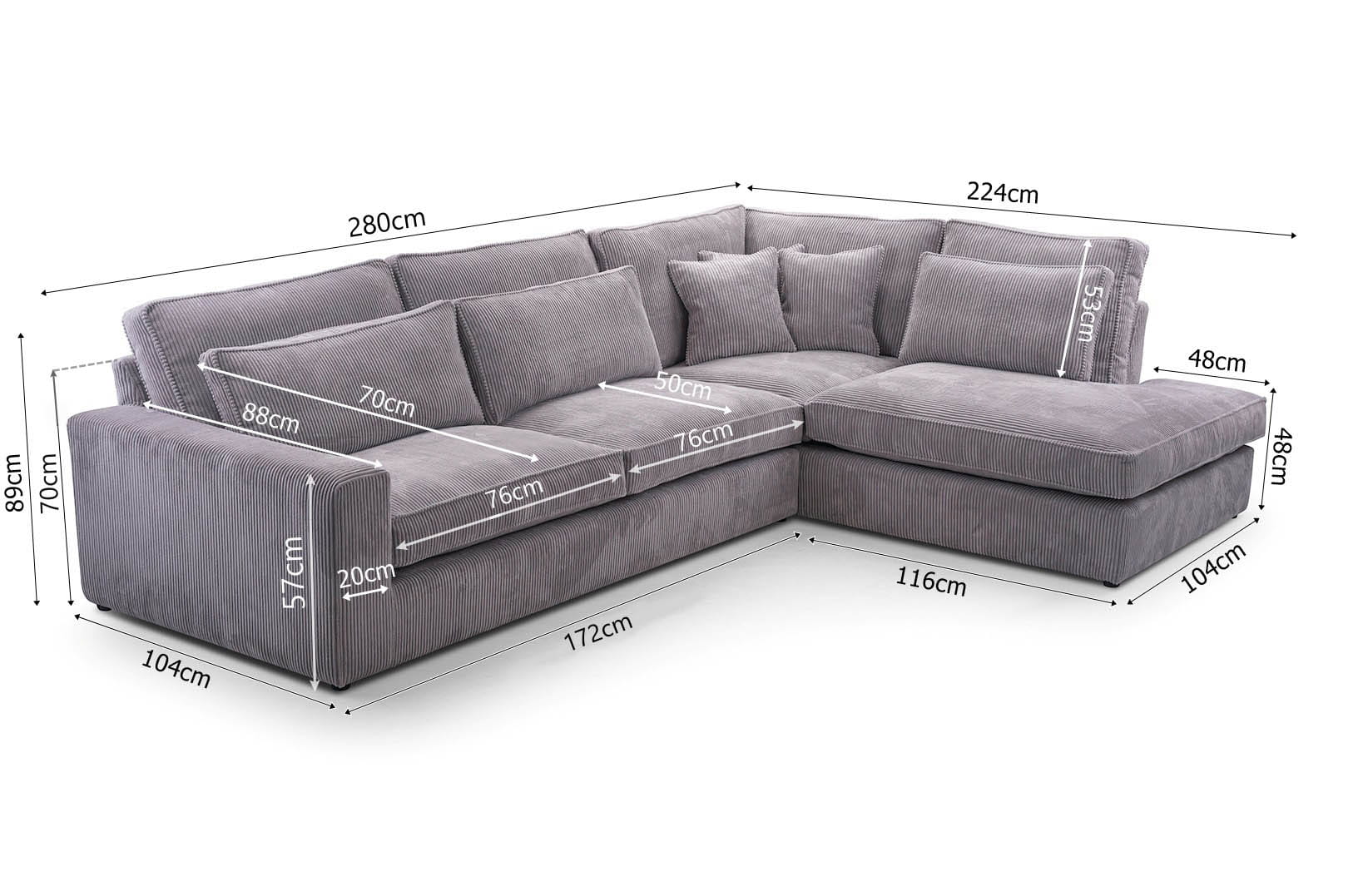 - Wysokość (z poduchami): 89 cm
