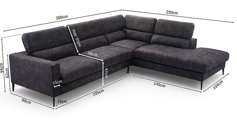 Narożnik do salonu z regulowanymi zagłówkami – STELLA