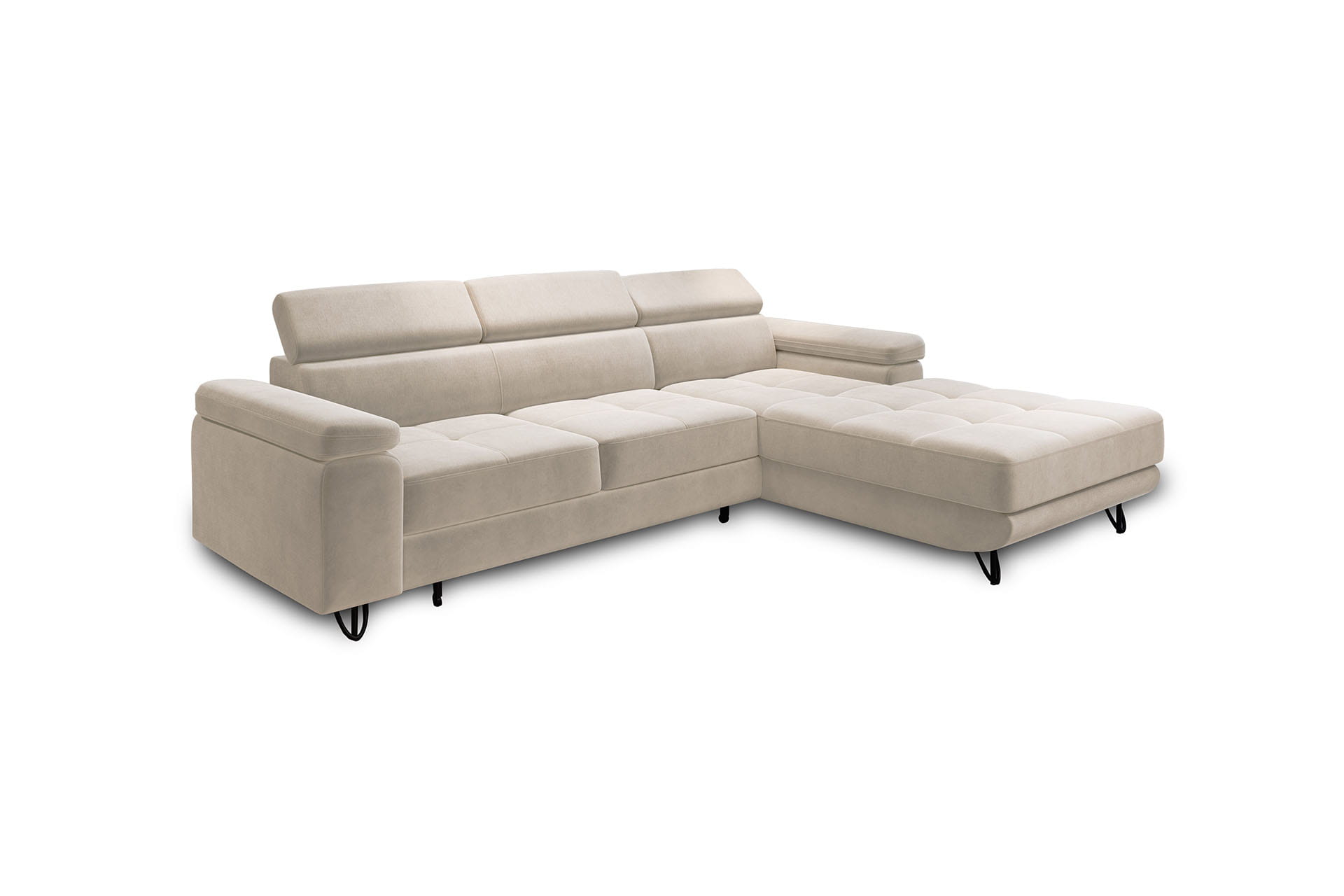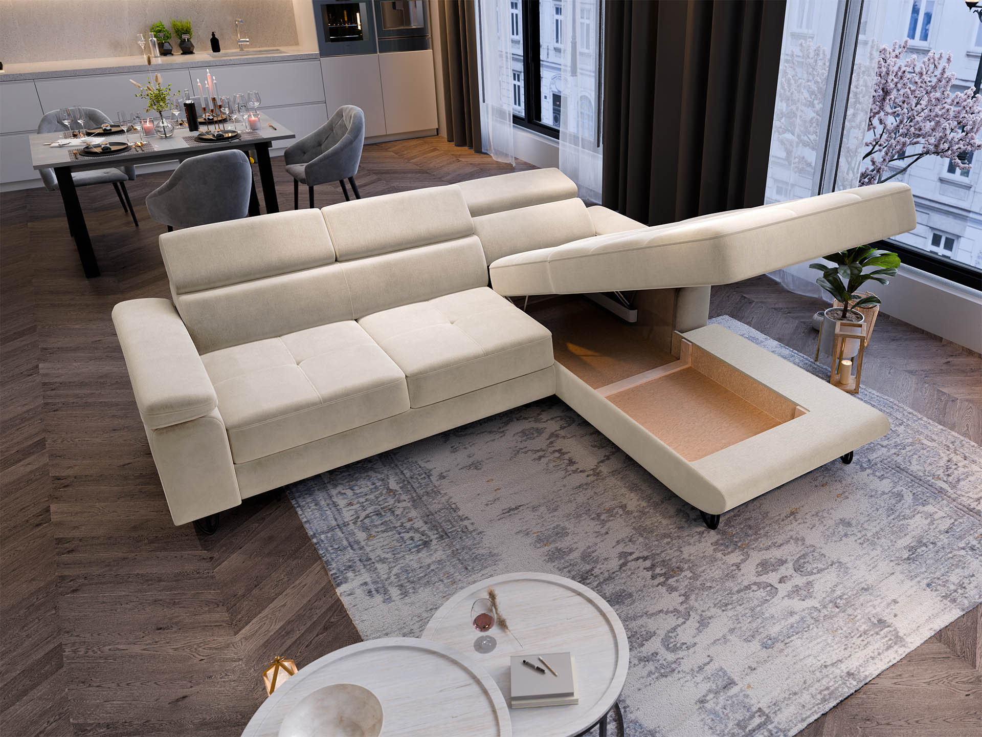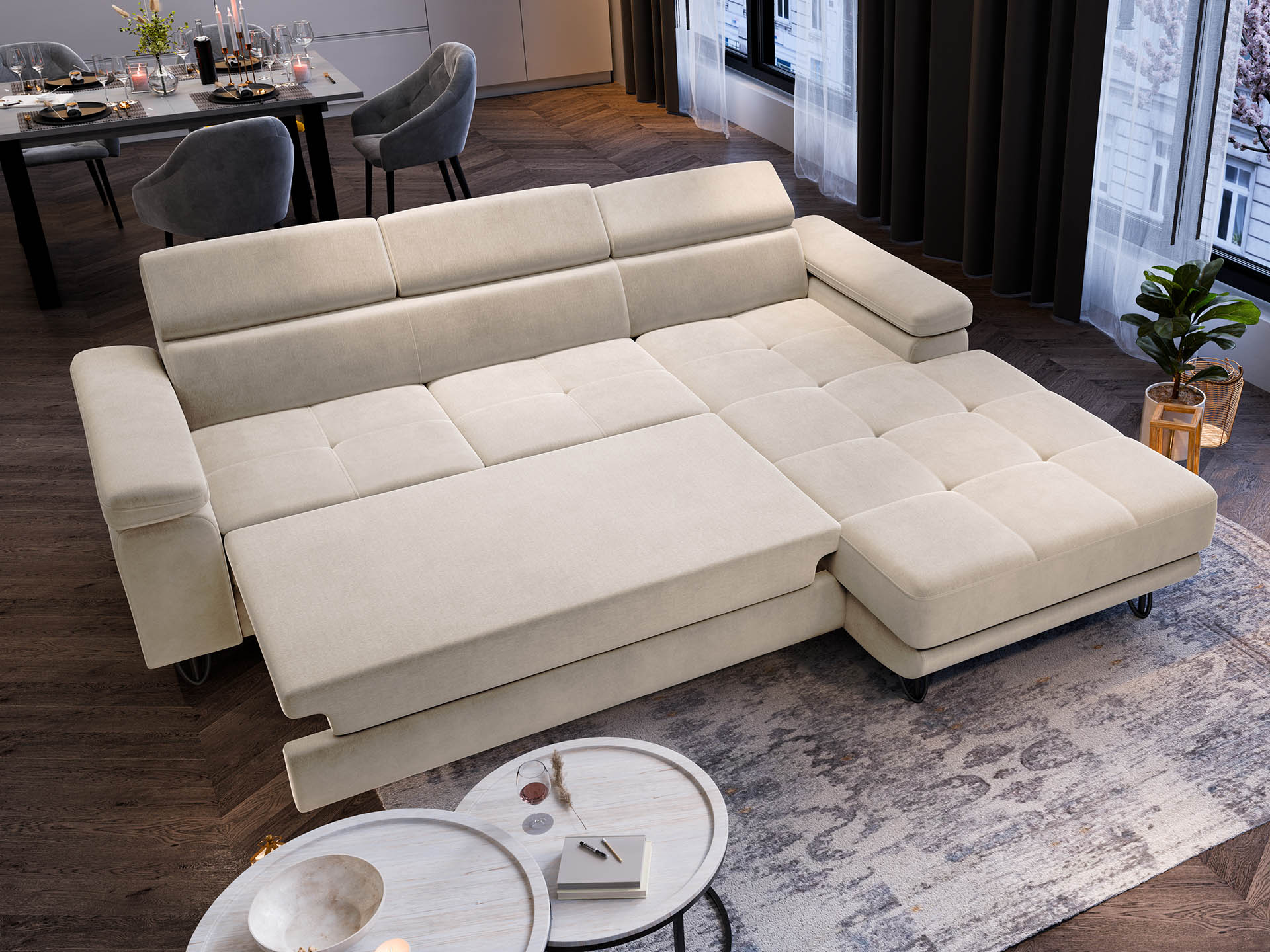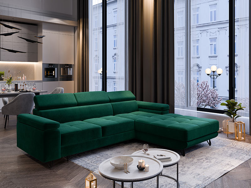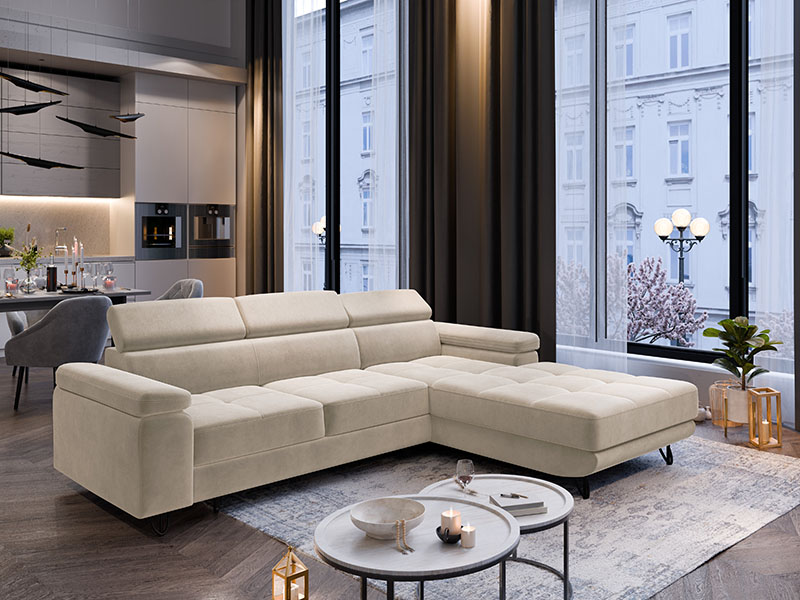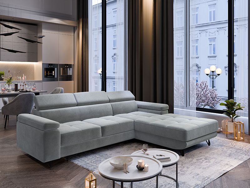 Kompaktowy narożnik łączący funkcjonalność z elegancją. Narożnik KORFU został stworzony z myślą o funkcjonalności i estetyce, oferując przestrzenną 3-osobową kanapę z opcją rozkładania. Z KORFU możesz zrelaksować się podczas oglądania ulubionego serialu z przyjaciółmi i rodziną, a funkcja spania sprawia, że staje się idealnym miejscem do odpoczynku. Modne kolory, w jakie jest dostępny, nadają mu nowoczesny charakter, jednocześnie harmonijnie wpasowując się w różne aranżacje wnętrz. Dodatkowym atutem narożnika KORFU są 3 regulowane zagłówki.