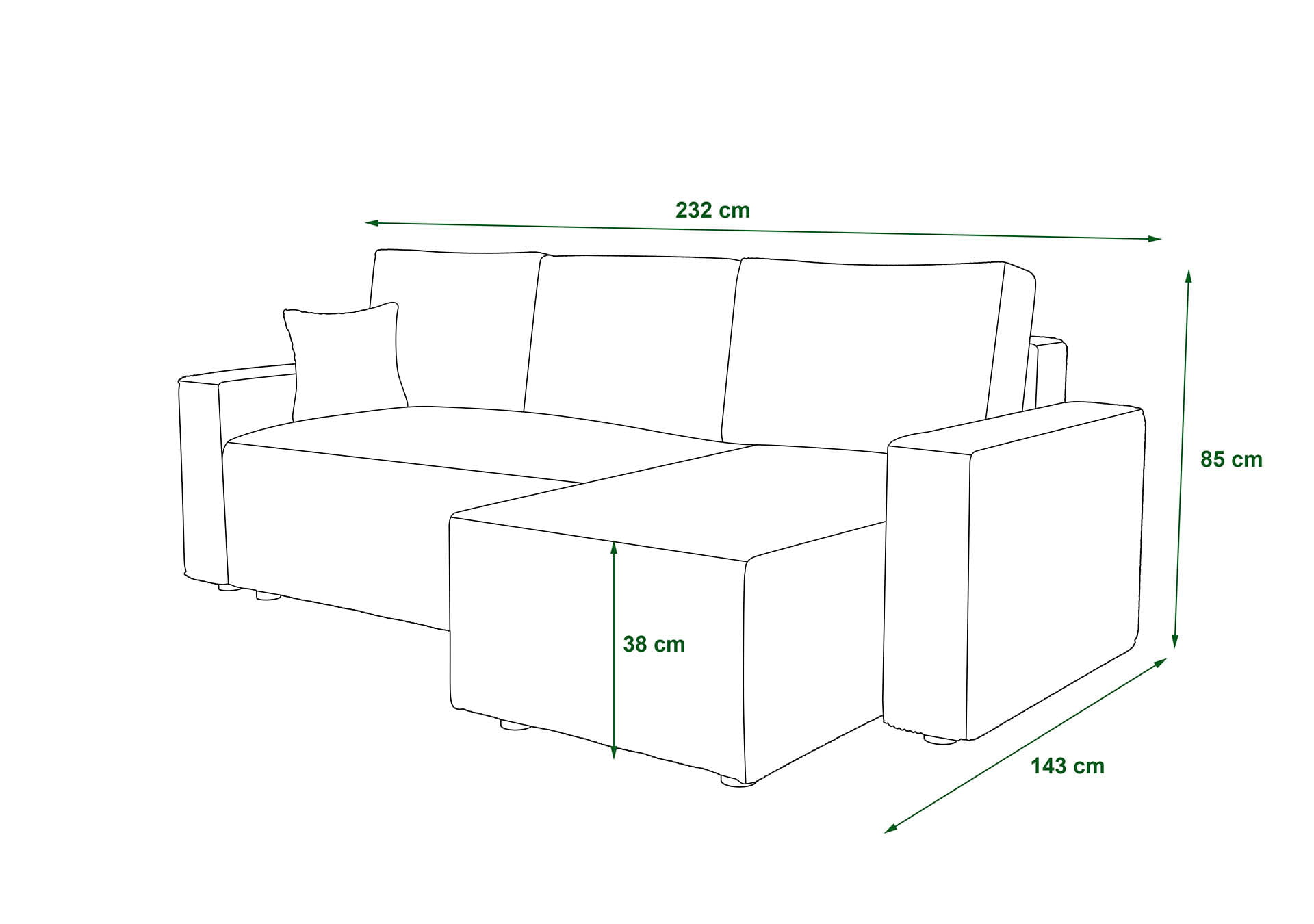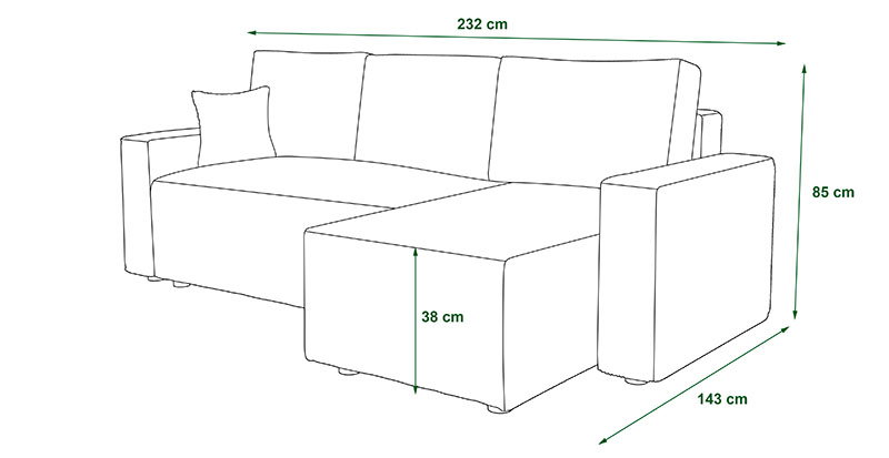- Wysokość (z poduchami): 85 cm