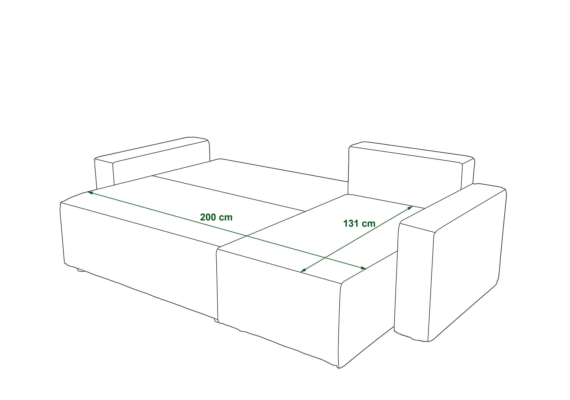 - Powierzchnia spania: 200x131 cm