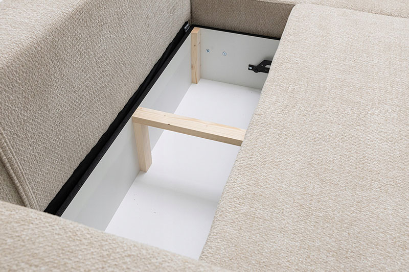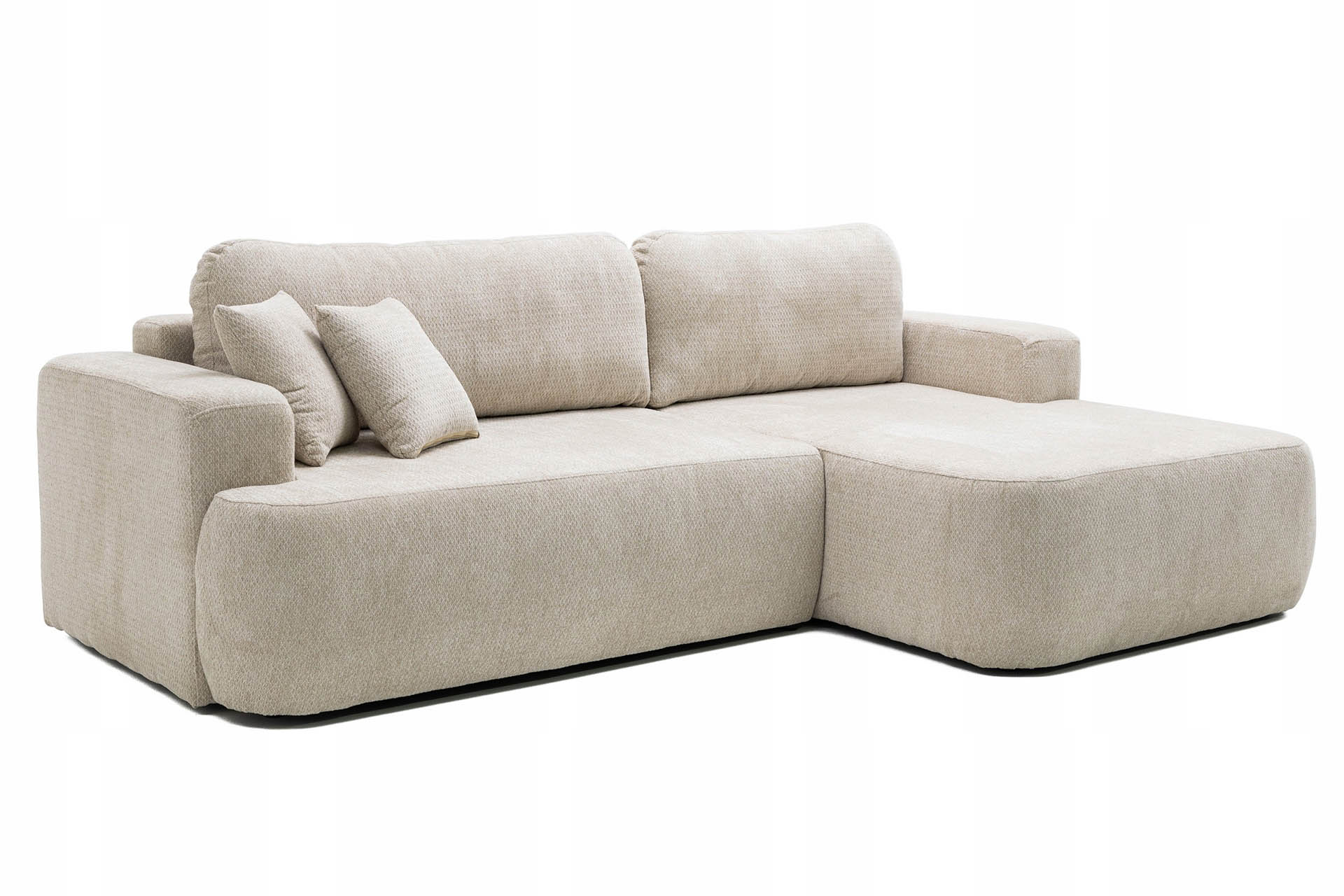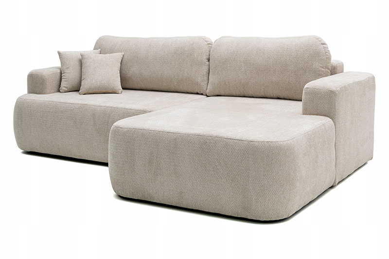 Kompaktowy rozmiar narożnika sprawia, że doskonale pasuje do mniejszych przestrzeni, a funkcja spania z łatwym w obsłudze systemem DL zapewnia wygodę i praktyczność. Dodatkowo, narożnik wyposażony jest w pojemny schowek na pościel, co zwiększa jego funkcjonalność i pomaga w utrzymaniu porządku.