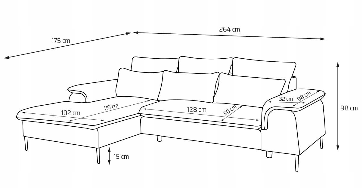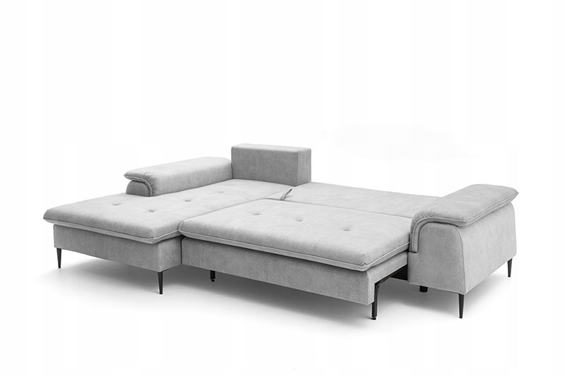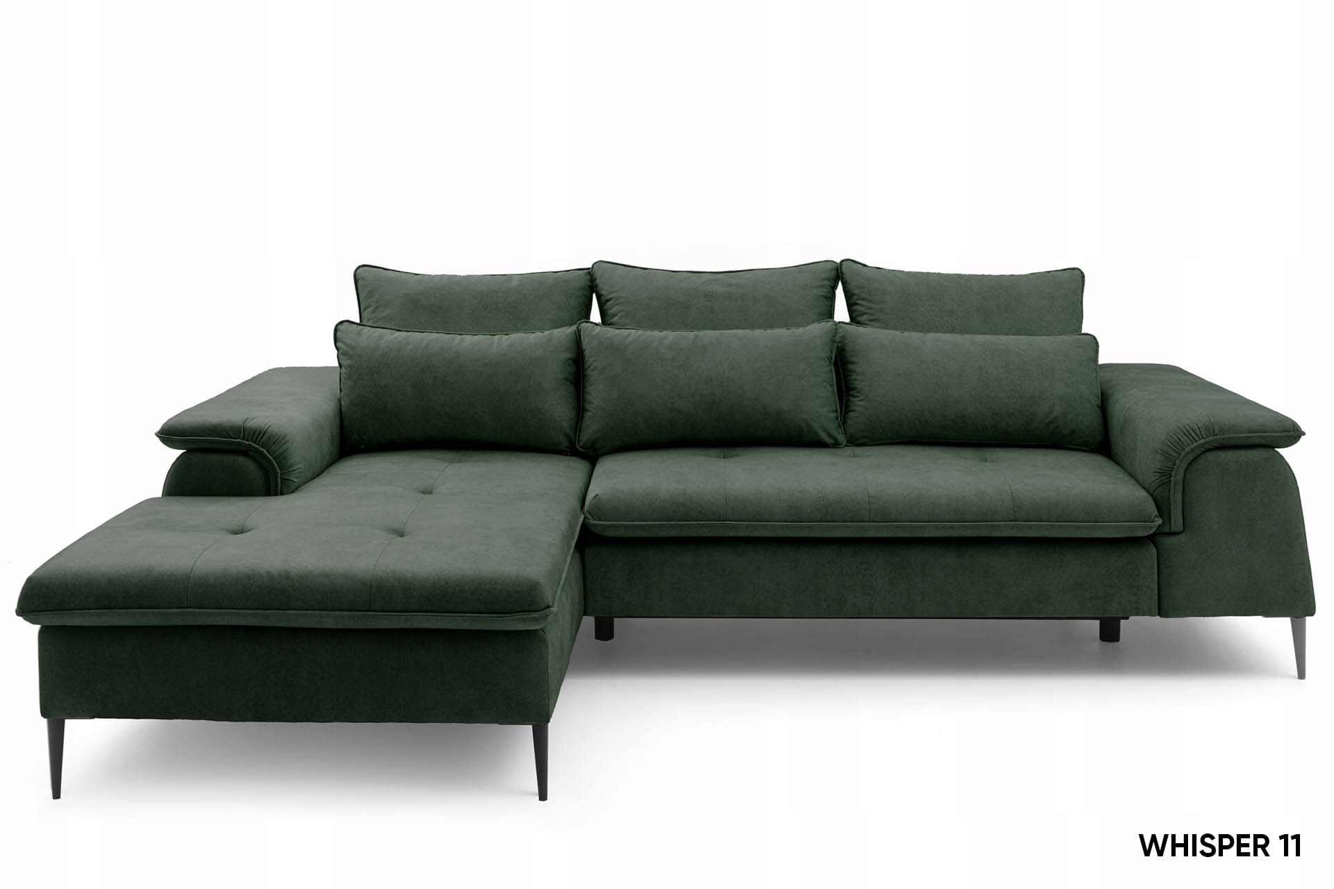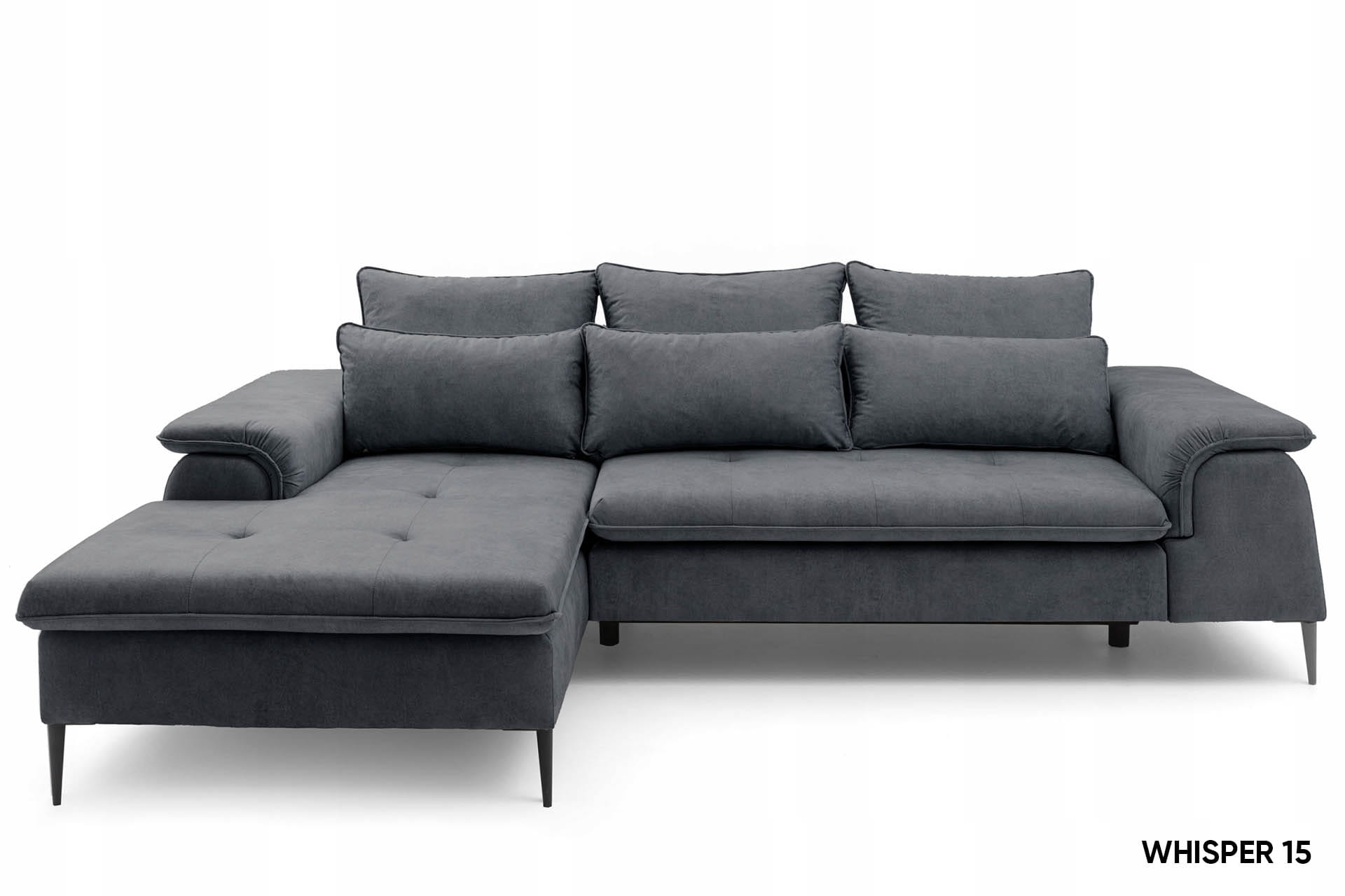 Narożnik NOBON to idealne połączenie współczesnego wzornictwa i praktycznego podejścia do codziennego użytkowania. Jego przemyślane wymiary sprawiają, że doskonale odnajdzie się zarówno w przestronnych salonach, jak i w mniejszych wnętrzach. Ruchome poduchy oparciowe nie tylko podnoszą komfort wypoczynku, ale też wprowadzają elegancki, klasyczny akcent, który dodaje wnętrzu charakteru. Praktyczny pojemnik na pościel oferuje dodatkowe miejsce do przechowywania, a automat wspomagający rozkładanie ułatwia szybkie przekształcenie narożnika w miejsce do spania.