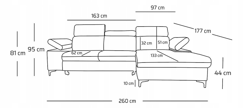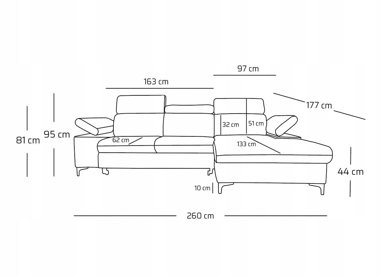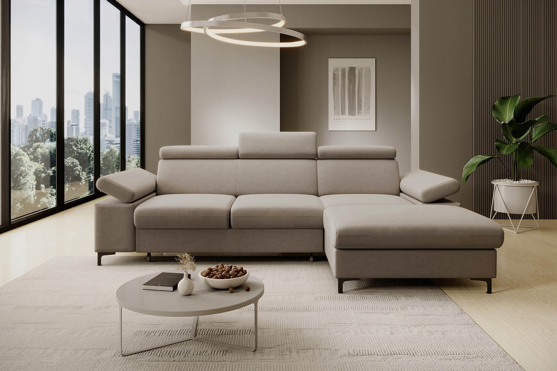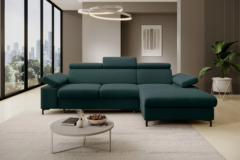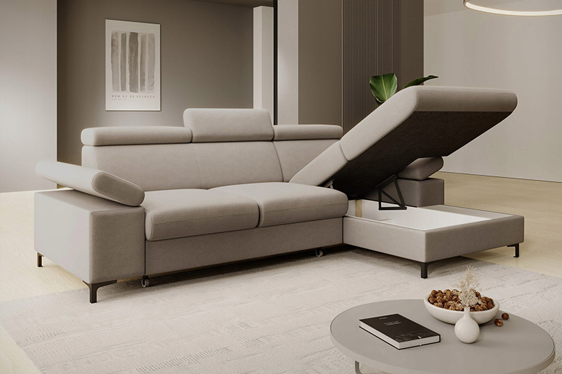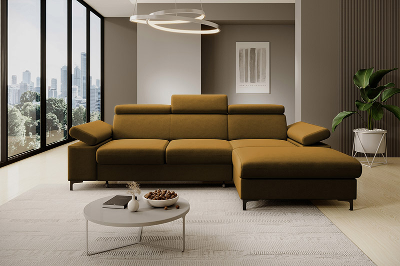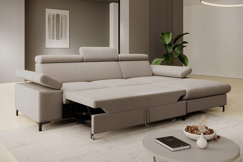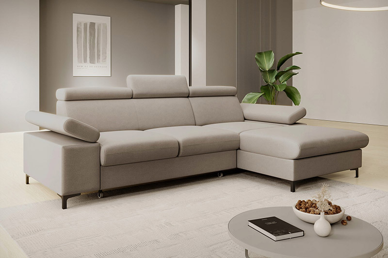 Nowoczesny narożnik z funkcją spania i regulowanymi zagłówkami – MARINO