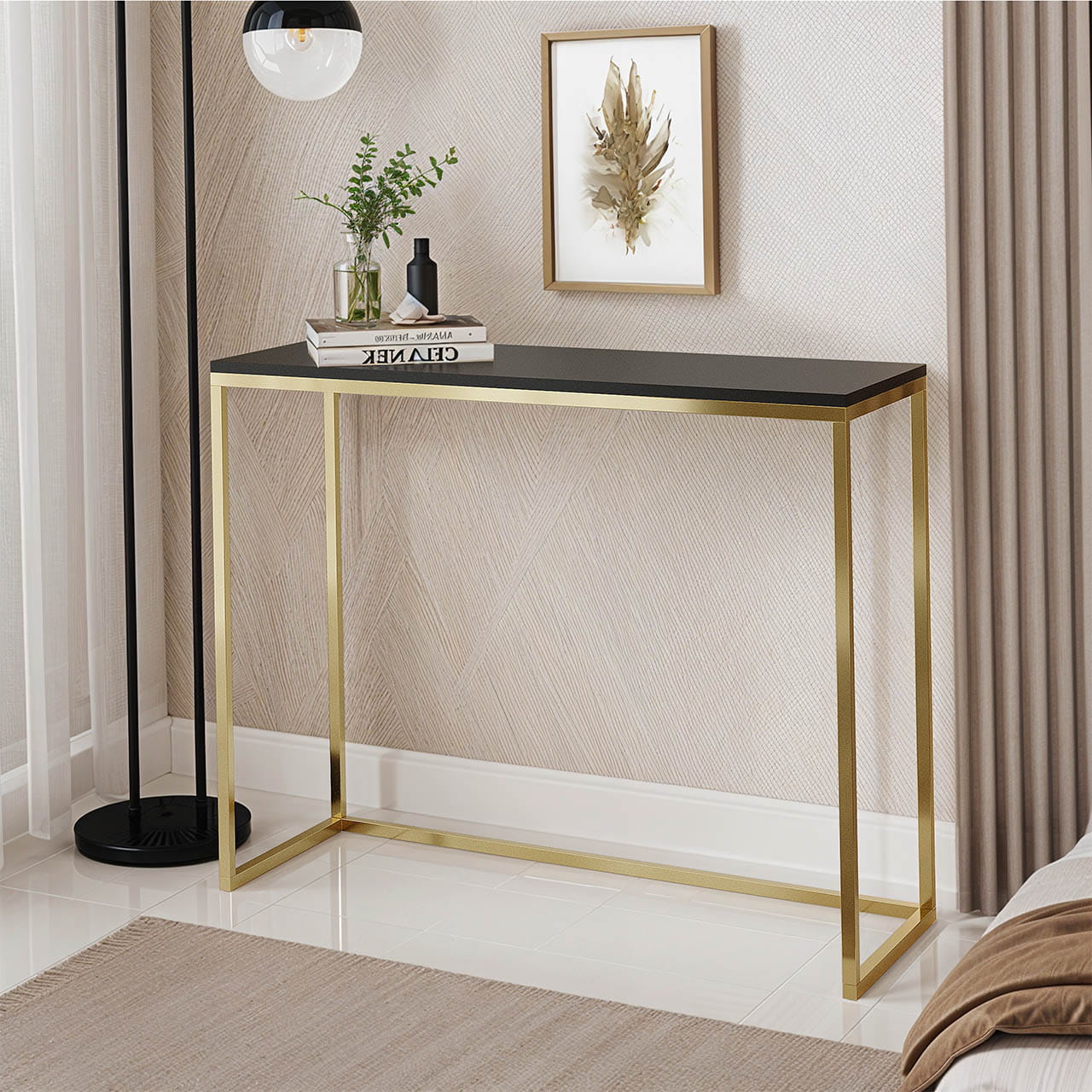 Konsola do przedpokoju - czarny mat / złoty