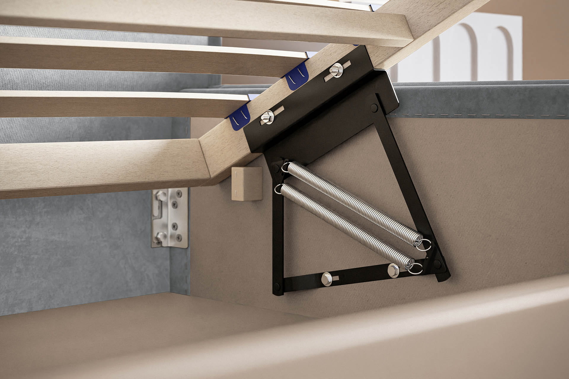 - Mechanizm podnoszenia stelaża na podnośnikach sprężynowych