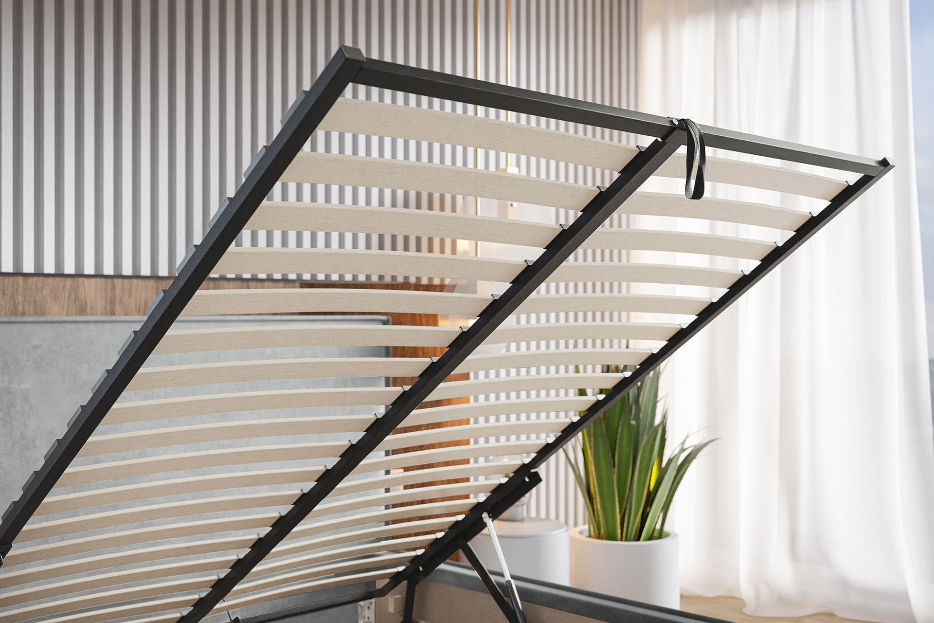 Łóżko ze stelażem i pojemnikiem na pościel