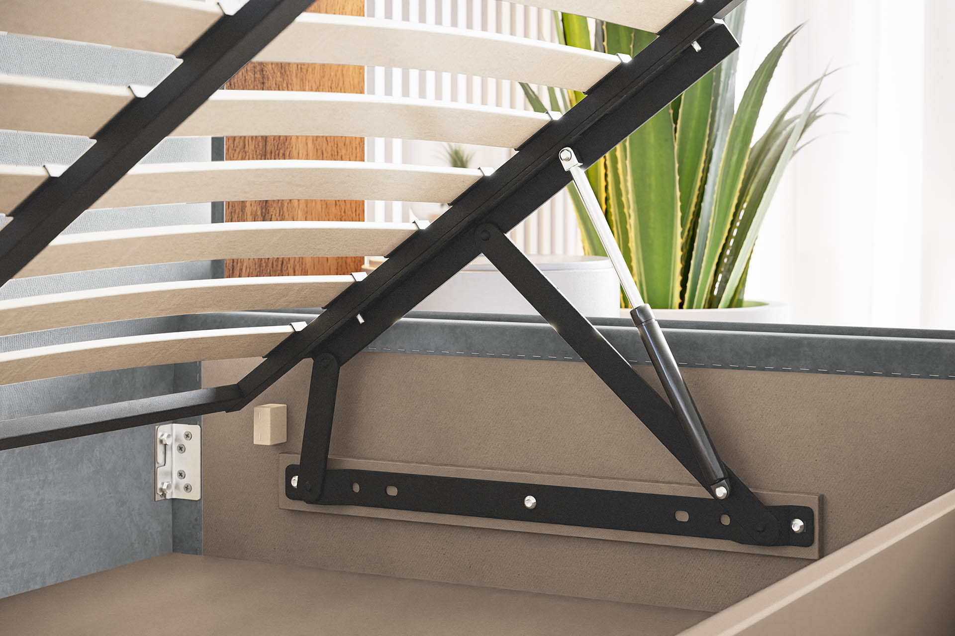 - Pojemnik na pościel znajduje się na całej powierzchni łóżka