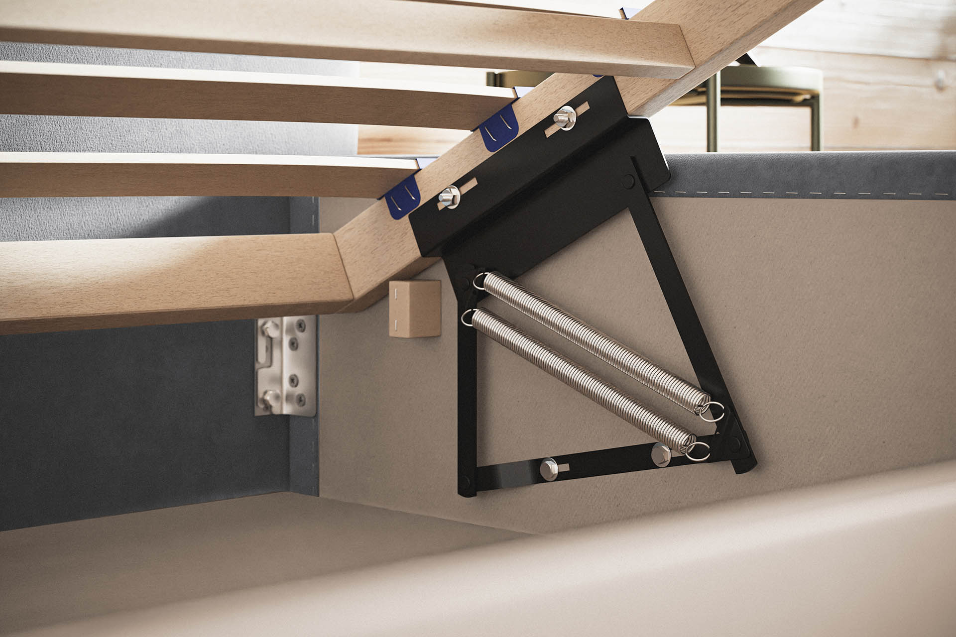 - Mechanizm podnoszenia stelaża na podnośnikach sprężynowych