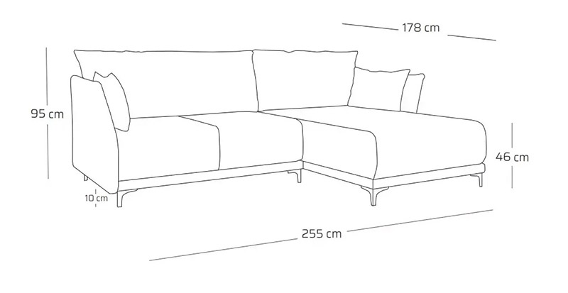 - Wysokość (z poduchami): 95 cm