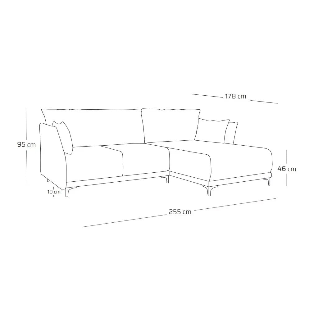- Tył narożnika obity tkaniną w kolorze mebla