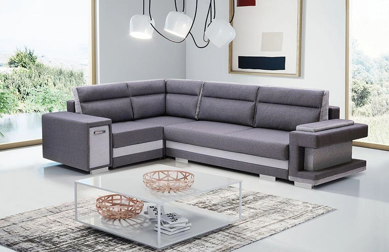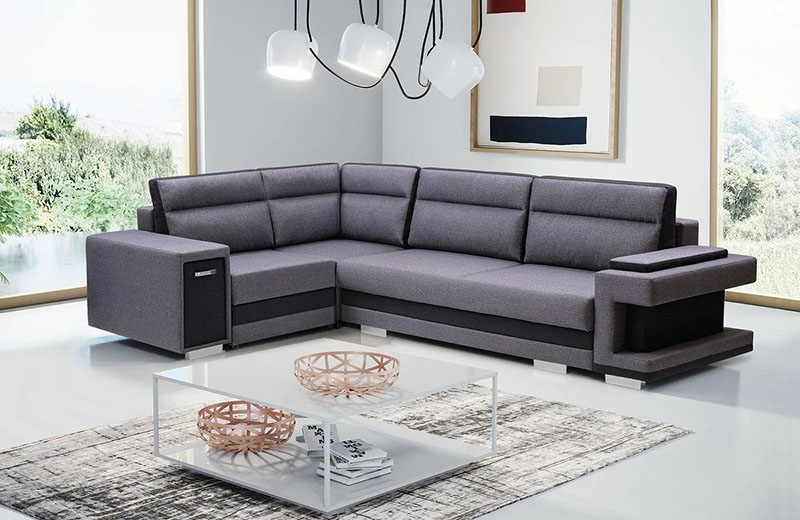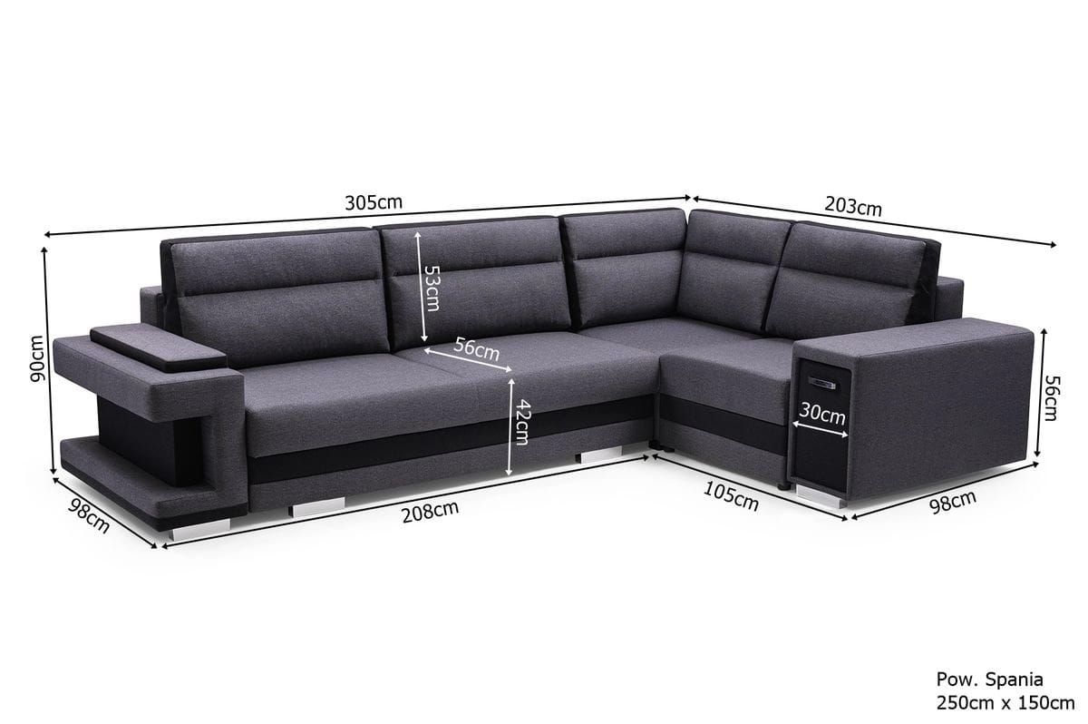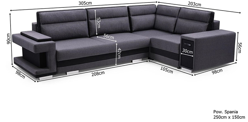 Narożnik FABIO JUNIOR, to propozycja do nowocześnie urządzonego salonu. Mebel ten jest duży, funkcjonalny i wykończony wysokiej jakości tkaniną. Łatwa w obsłudze funkcja spania czyni go praktycznym i na pewno przyda się przy niespodziewanej wizycie gości. Dopełnieniem są dwa pojemniki na pościel znajdujące się w otomanie. Całość wykonana z niezwykłą dbałością o szczegóły. Siedzisko zostało wypełnione pianką T30, dzięki zastosowaniu technologii sprężyn falistych uzyskujemy siedzisko o znacznie podwyższonej wytrzymałości i stabilności.