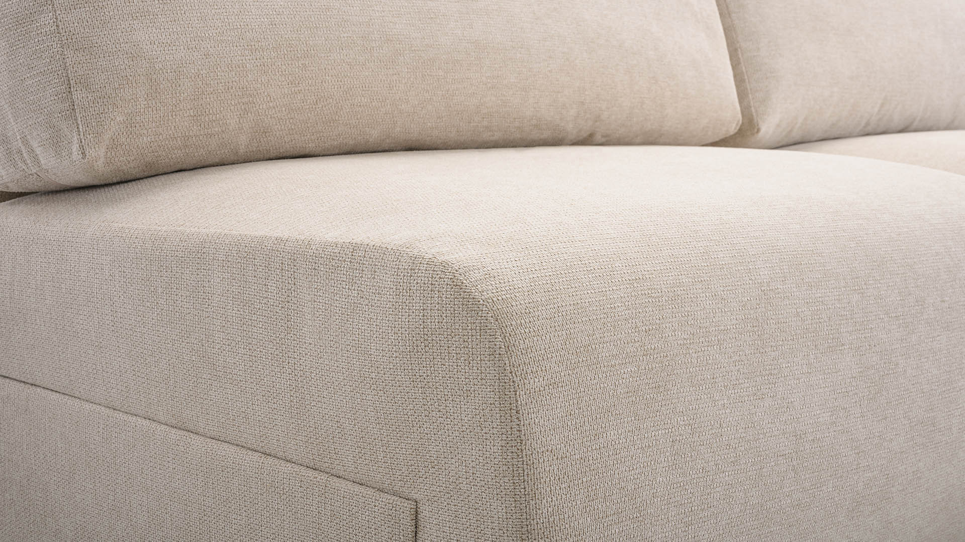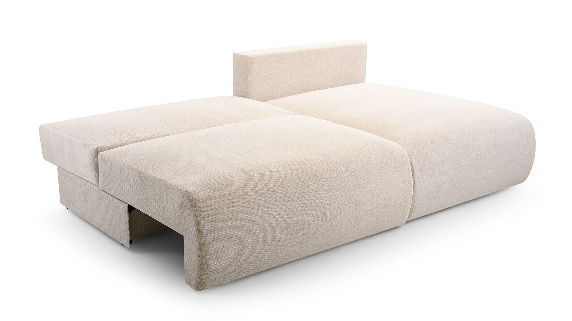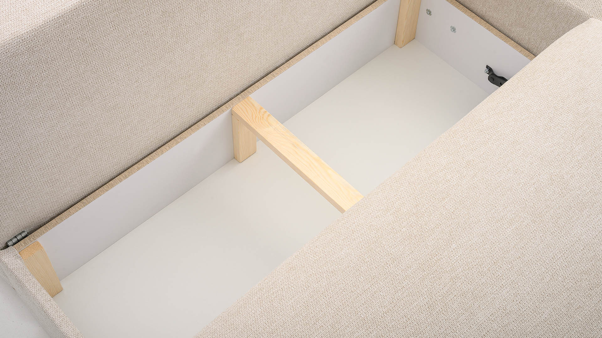 Kompaktowy rozmiar narożnika sprawia, że doskonale pasuje do mniejszych przestrzeni, a funkcja spania z łatwym w obsłudze systemem DL zapewnia wygodę i praktyczność. Dodatkowo, narożnik wyposażony jest w pojemny schowek na pościel, co zwiększa jego funkcjonalność i pomaga w utrzymaniu porządku.