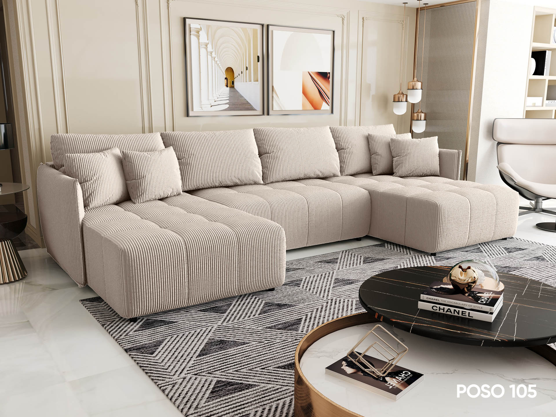Nowoczesny narożnik rozkładany OTIS U z funkcją spania