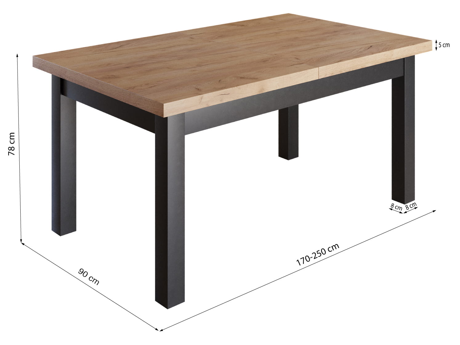 - Nogi stołu: 8 cm x 8 cm
