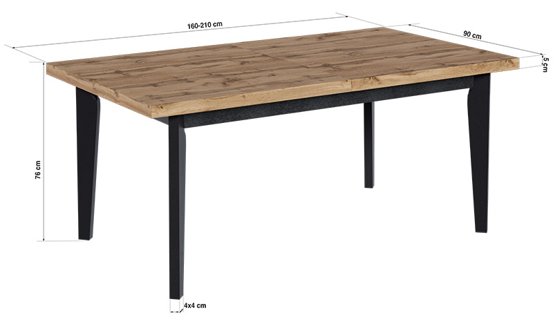 • Nogi stołu przy podłodze: 4 cm x 4 cm