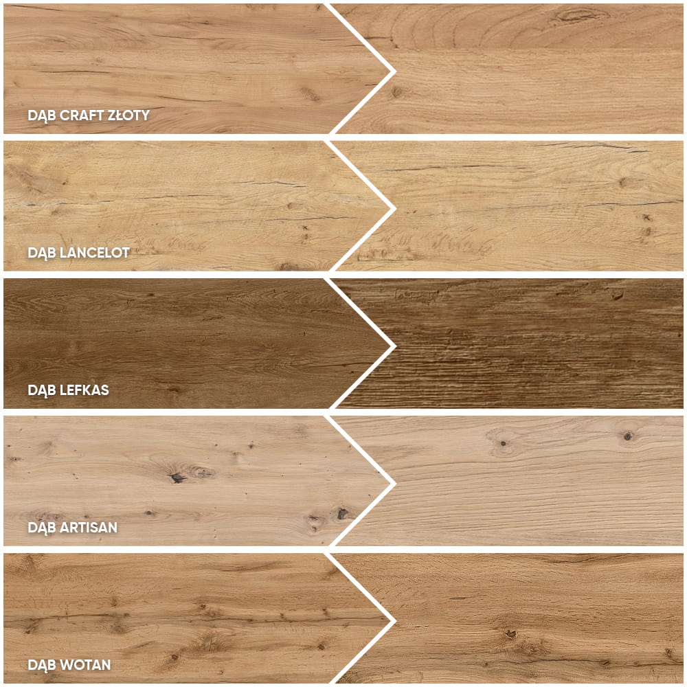 Płyty w kolorze dąb lancelot oraz dąb lefkas zawierają charakterystyczne przebarwienia oraz rysy, aby jak najbardziej przypominać drewno.