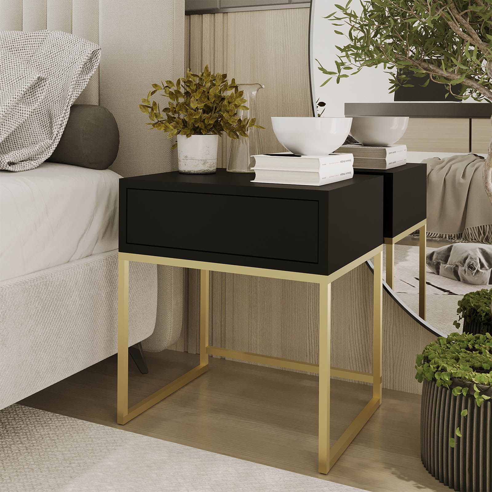 Szafka nocna wykonana z matowej płyty laminowanej, zapewnia elegancki wygląd i długotrwałą wytrzymałość. Posiada praktyczną szufladę, która pozwala na wygodne przechowywanie drobnych przedmiotów. Idealnie wpisuje się w trendy, łącząc prostotę z funkcjonalnym designem.
